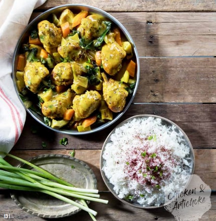 שוקי עוף ברוטב לימון ושמן זית עם עלי מנגולד וארטישוק